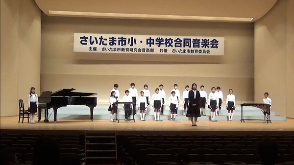 11月12日(水)にさいたま市文化センターで小・中合同音楽会が開催されました。新開小学校からは、オーディションの結果4年2組が学校代表として参加してきました。大きな会場の雰囲気にものまれず、堂々とした態度で「もののけ姫」の合奏を演奏しました。他校の合奏も聞くことができ、貴重な経験となりました。保護者の皆様、当日までの体調管理や衣装の準備など、様々な面でご協力いただきありがとうございました。
