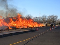 田島ケ原サクラソウ自生地にサクラソウの草焼き見学に行きました。離れていても伝わってくる熱や、燃え上がる炎の様子に圧倒されながら観察をしていました。また、サクラソウを守る会の方から草焼きを行う理由や歴史も教えていただきました。今回の学びを現在作成しているパンフレットに生かしていきます。