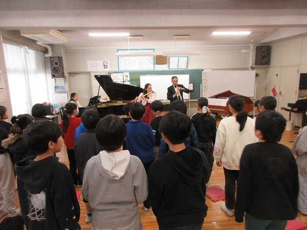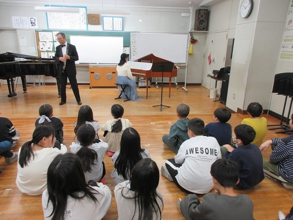 夢工房「未来(みら)くる先生」をお招きし、オーボエ教室を行いました。子どもたちはオーボエだけでなく、フルートやチェンバロといった初めて見る楽器の生演奏に引き込まれていました。また、一緒に合唱も行い貴重な経験となりました。最後の話では、一曲を完成させるために何万回もの練習が必要なことに驚きながらも、自分自身の夢に向かって努力し続けたいという声が聞こえていました。今回の経験を今後の生活に生かしていってほしいです。